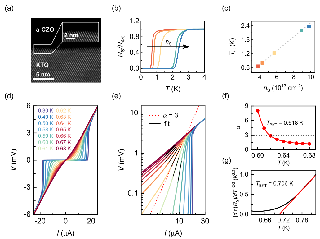 图1. a-CZO/KTO(111)界面的二维超导电性