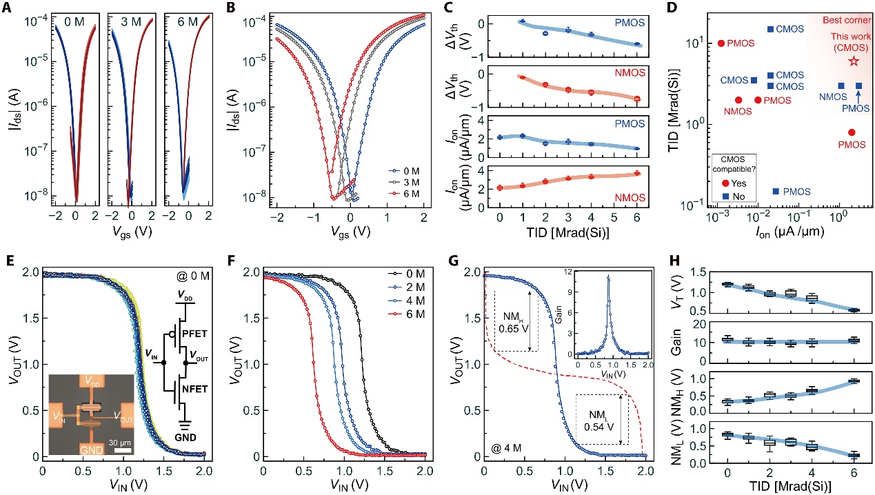 图3 互补型碳纳米管场效应晶体管的辐照性能