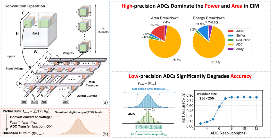 在本届ICCAD上,beats365亚洲版官网集成电路学院共有 8篇高水平学术论文入选,充分体现了我院在新型计算架构、AI驱动EDA算法与智能电路设计等方向的持续创新与国际影响力。入选论文覆盖存算一体架构优化、低精度感知训练算法、混合RAM异构加速器设计、高维模拟电路自动化优化、良率建模与优化、以及物理数据融合非理想建模 等多个前沿研究领域,展示了我院在“从器件—电路—架构—算法”全栈协同设计方面的系统研究优势。8篇论文成果简介如下: