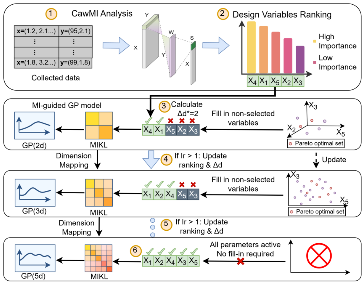 随着现代模拟与混合信号(AMS)电路的复杂度日益提升,其核心的晶体管尺寸优化面临着严峻挑战,设计者必须在由数十个参数构成的庞大空间中探索,但每一次电路仿真都极为耗时。为此,以贝叶斯优化(BO)为代表的自动化方法被提出,作为提升设计效率的解决方案。虽然,BO因其样本高效性而备受关注,但在处理高维参数空间时其性能会急剧下降,也即“维度灾难”,其代理模型难以精确学习,导致优化停滞。此外,其他主流方法也存在样本需求量大(强化学习)或过度简化电路特性(嵌入方法)的问题,难以在仿真效率、优化深度和方法普适性上取得最佳平衡。为解决以上问题,本研究提出了DIVE:一种动态信息化变量扩展优化框架。该框架包含约束感知加权互信息分析、自适应维度扩展机制和互信息引导的核函数学习三方面创新,从参数评估、空间管理到模型学习层级开展协同优化。在多个基准电路上,DIVE展现了卓越的性能,实现了高达21.11倍的仿真效率提升和2.69倍的电路性能改进,同时该框架通过动态聚焦于高信息量参数,成功探索到了传统方法难以触及的更优设计空间,为解决高维“黑盒”优化问题开辟了新路径。