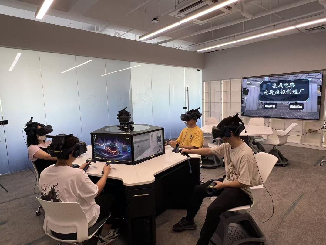 近年来,集成电路学院依托“虚拟仿真实验教学2.0——体系化、标准化、装备化”理念,建设了“集成电路工艺与装备虚拟仿真创新实践平台”,并开发一系列虚拟仿真实验课程,逐步形成覆盖“器件设计-工艺仿真-装备验证”的三位一体课程体系。依托超级视觉虚拟仿真工程实训基地,学院引入VR技术,打造沉浸式视觉与交互体验,突破传统PC端单一模式,结合14 nm Foundry工艺线场景,利用AI技术搭建全流程虚拟生产线,融合工艺线与仿真器实现器件虚拟流片与封装工艺验证,推动“教学-科研-产业”深度协同,形成集成电路领域虚实融合的工程教育新范式。