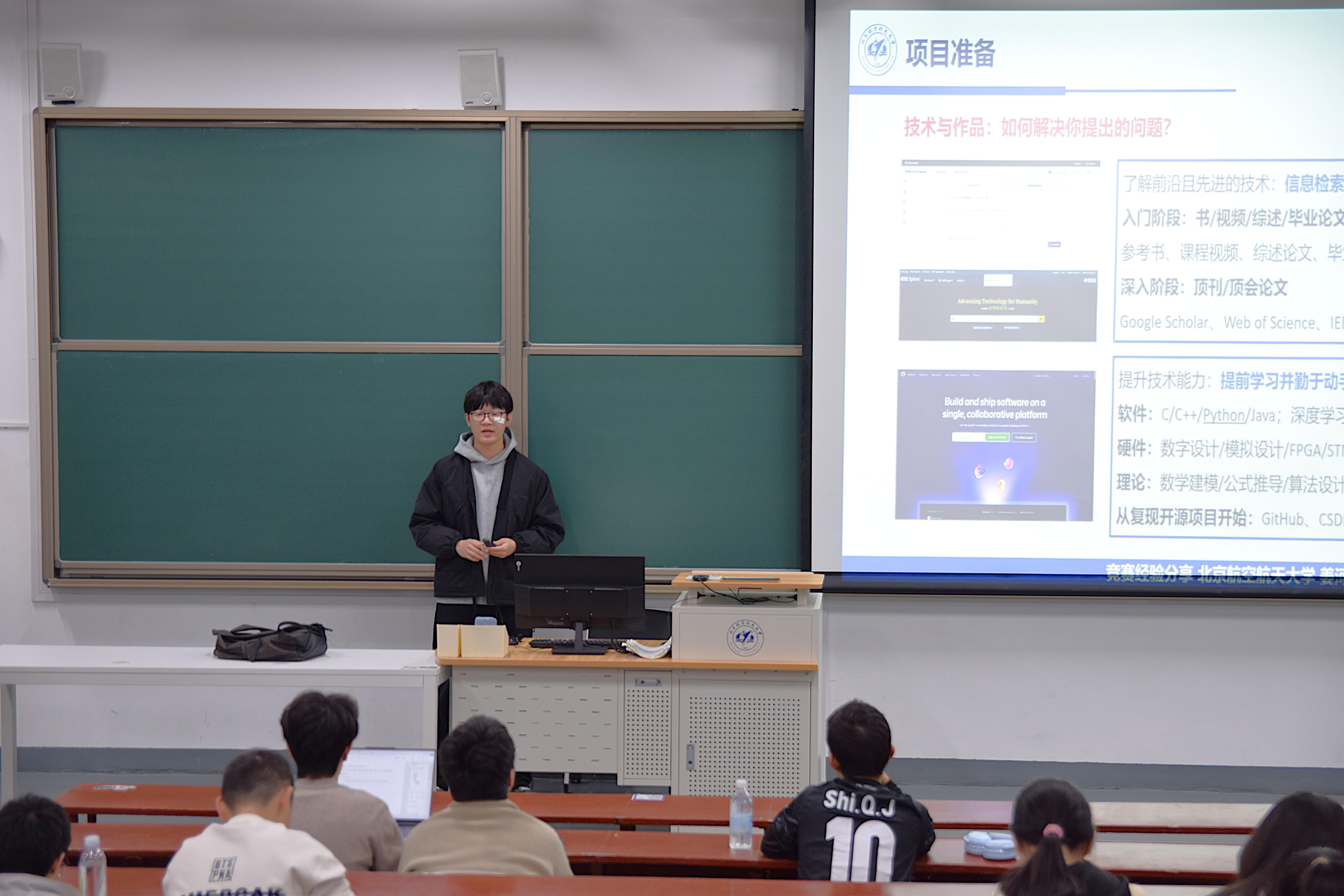 本次科创竞赛经验宣讲会内容详实、指导性强,有效解答了同学们在备赛过程中的困惑,进一步激发了大家的科创热情。未来,beats365亚洲体育投注将持续聚焦学子成长需求,搭建更多经验交流与能力提升的平台,不断完善科创人才培养体系,助力更多北航学子在科技创新的道路上勇攀高峰,为集成电路领域的发展贡献青春力量。