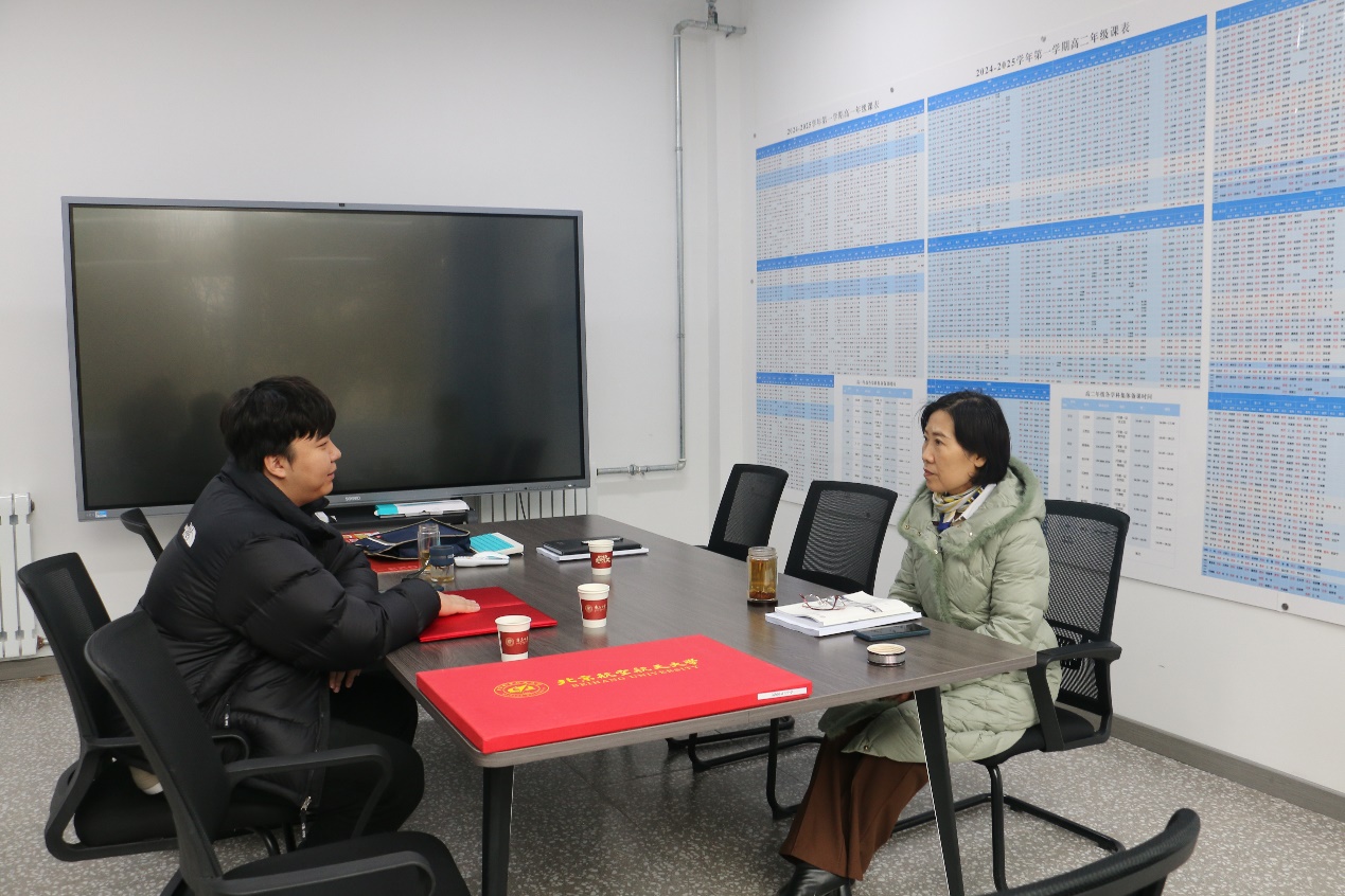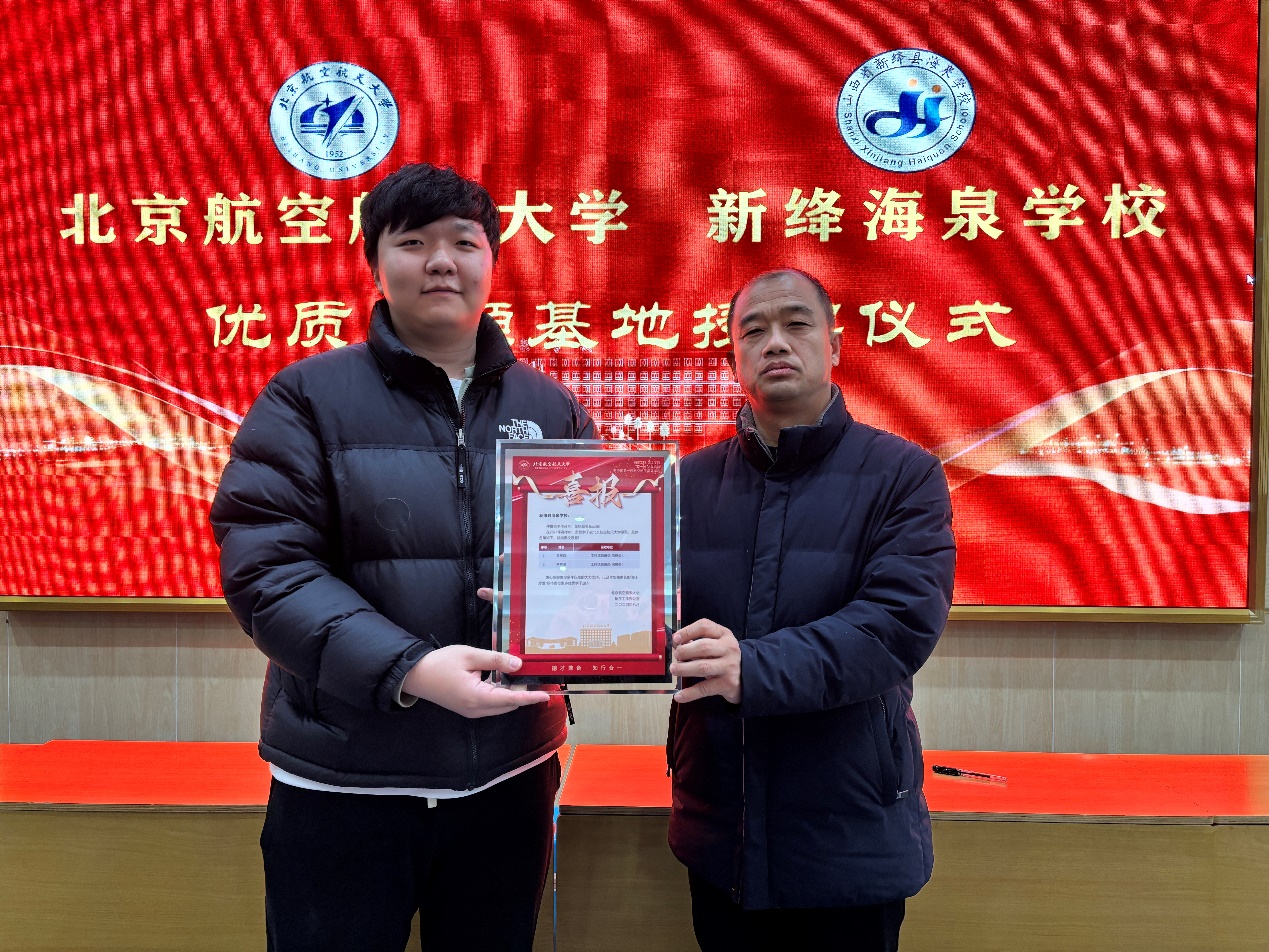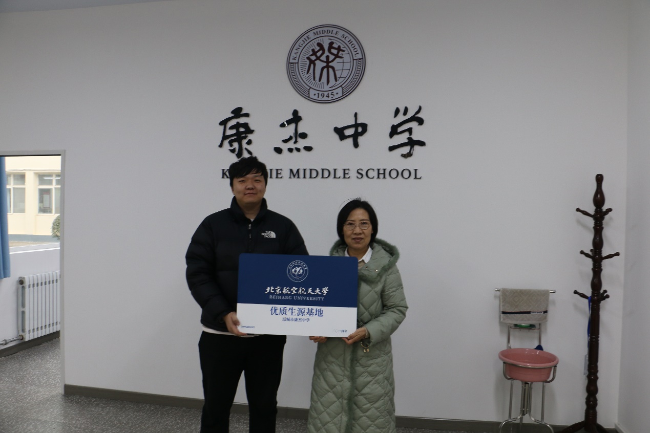 在康杰中学,集成电路学院专职辅导员、山西招生组成员胡晏铭与副校长李梅菊、张阳朋老师深入座谈,着重阐述了北航的学科设置、专业特色以及历年的招生政策等相关信息,全面解答了关于北航招生的各类问题。座谈结束后,双方共同进行了“优质生源地基地”授牌签约仪式。