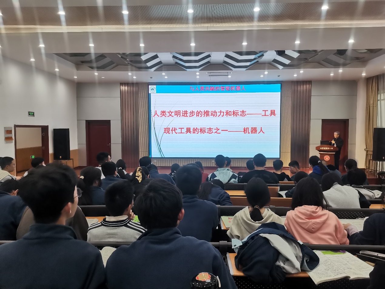 开幕式结束后,贠超教授面向临汾一中高二300多名学生,作《与人类共融的智能机器人》为主题的科普讲座,带领学生拥抱机器人技术,感受科学技术的魅力和创新精神,启发学生思考科技发展对社会的深远影响的力量。