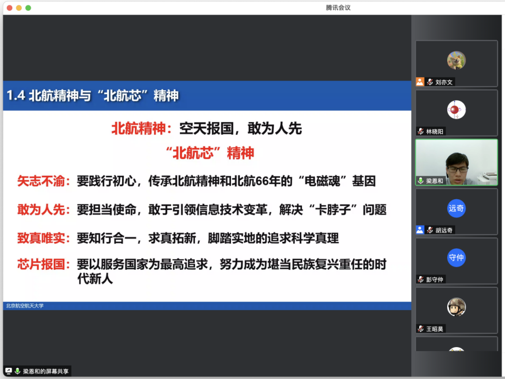 学院书记梁恩和老师对北航精神、北航“芯”精神进行了进一步的阐释,并从集成电路行业发展背景和现状、学院建设和发展情况、学生培养体系及培养目标等方面对学院进行了介绍,希望同学们勇于担当历史重任,将自己的奋斗融入国家的需要和时代的变革中。