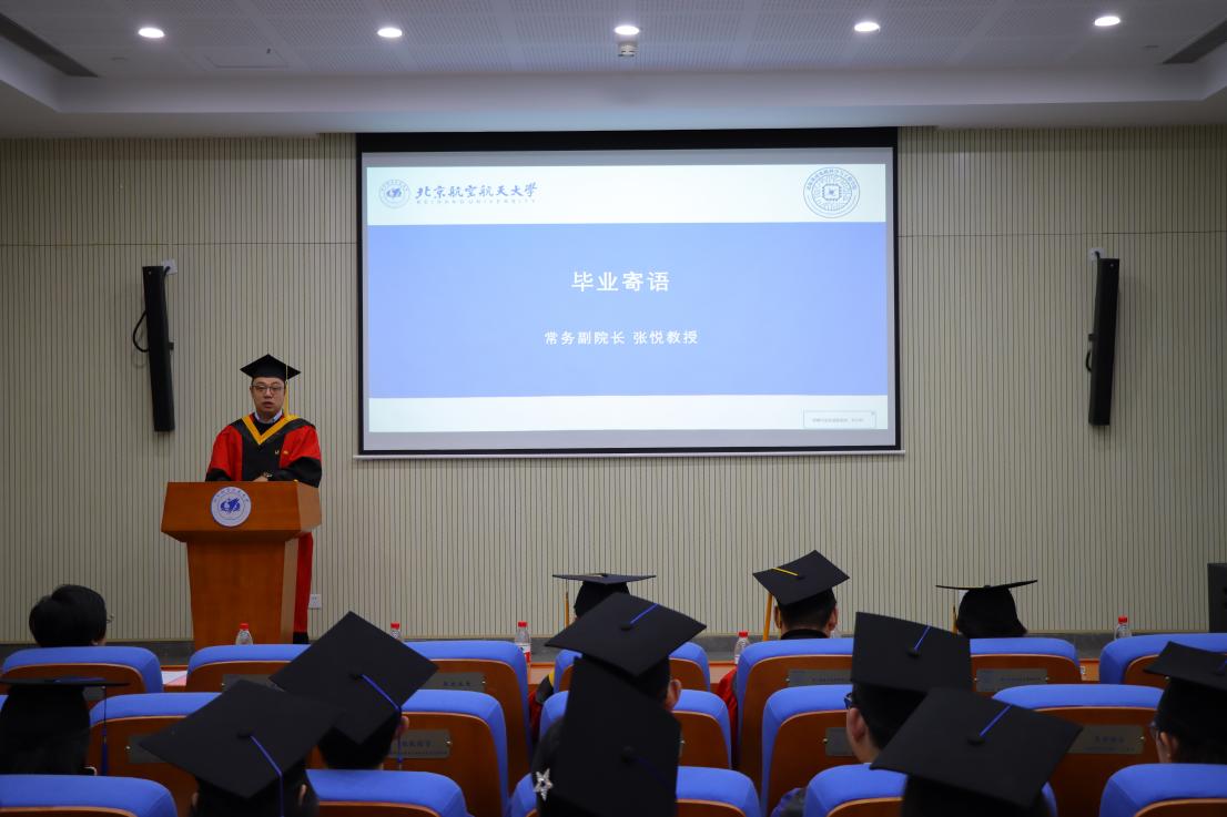 常务副院长张悦寄语2024届毕业生,向本届获得beats365亚洲版官网博士学位的4位同学和硕士学位的34位同学致以祝贺,向辛勤付出的老师和无私奉献的亲友团表示衷心的感谢。他回顾了本届毕业生在学院发展时间轴上的重要意义,肯定了同学们过去几年在学习生活中付出的巨大努力,勉励同学们不忘空天报国为内核的北航精神和芯片报国的北航芯精神,以充足的能力和信心去迎接光明的未来, 激励毕业生成为推动我国集成电路行业发展的中坚力量。