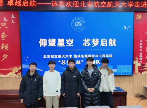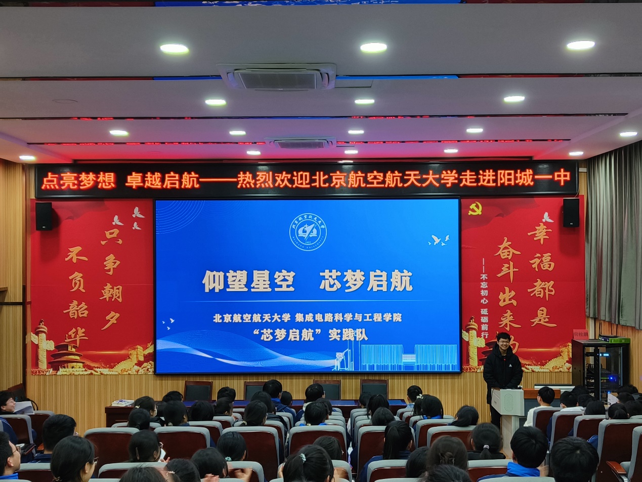 为弘扬北航空天报国精神,体现服务重大战略需求,北航山西招生组、北航集成电路学院“芯梦启航”实践队来到了阳城一中,围绕北航优势与北航集成电路学科建设进行了宣讲活动。