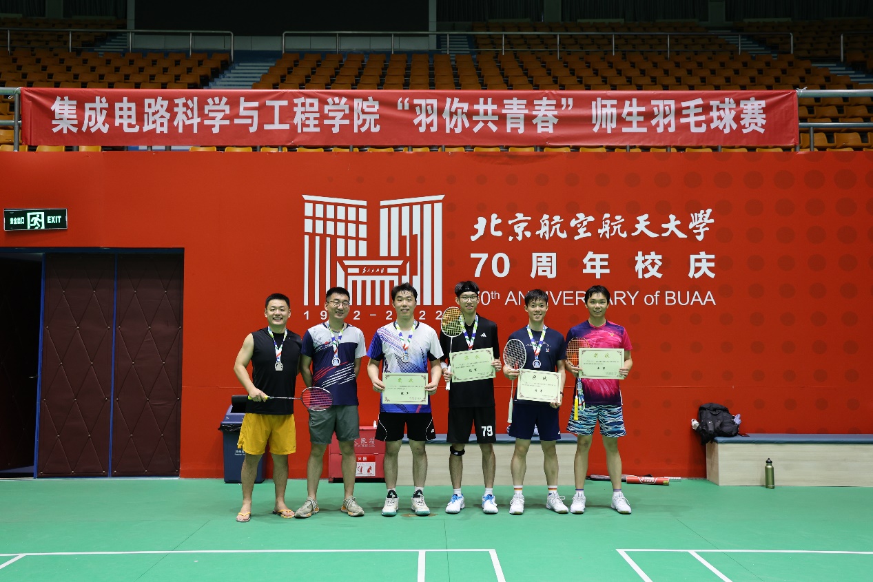 本次赛事获得了老师和同学们的积极响应,师生共计50余名运动员参赛,覆盖本硕博所有年级,累计进行了72场比赛。大家在小小的羽毛球场地上辗转腾挪,挥汗如雨,尽显校园师生的朝气蓬勃,同时展现了学院体育文化生机与活力。原本在实验室严肃的老师同门,今天成为了比赛场上的对手和战友,比赛过程中的拍手鼓励,赛后的拥抱致意时,都给大家留下了别样的记忆。
