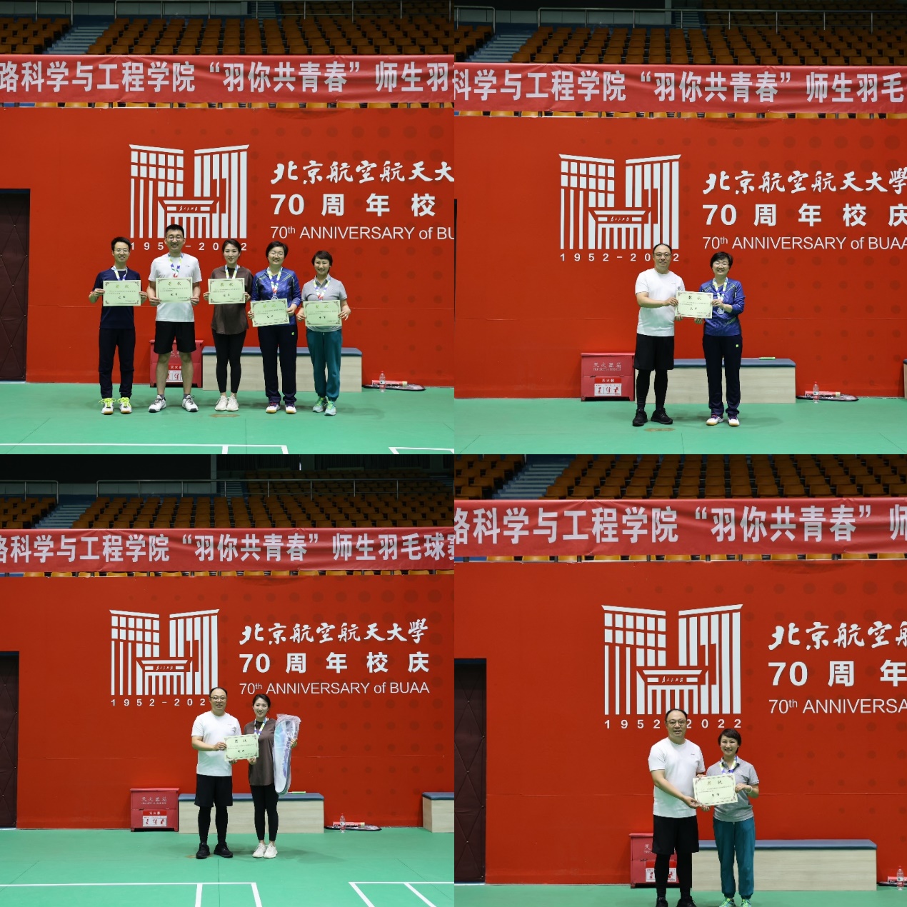 随着最后一球落地,在观众与队员阵阵欢呼声中,北航beats365亚洲体育投注第二届师生羽毛球赛在学院路校区体育馆圆满落下了帷幕。