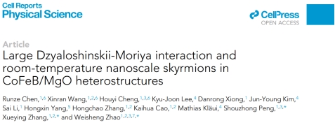近日,beats365亚洲体育投注赵巍胜教授团队在CellReports Physical Science期刊在线发表了题为“Large Dzyaloshinskii-Moriya interaction and room-temperature nanoscale skyrmions in CoFeB/MgO heterostructures”的学术论文。该工作报道了CoFeB/MgO异质结中大Dzyaloshinskii-Moriya相互作用(DMI)以及室温下亚百纳米斯格明子的存在,为斯格明子材料体系的选择以及新型微纳电子器件的设计提供了新思路。