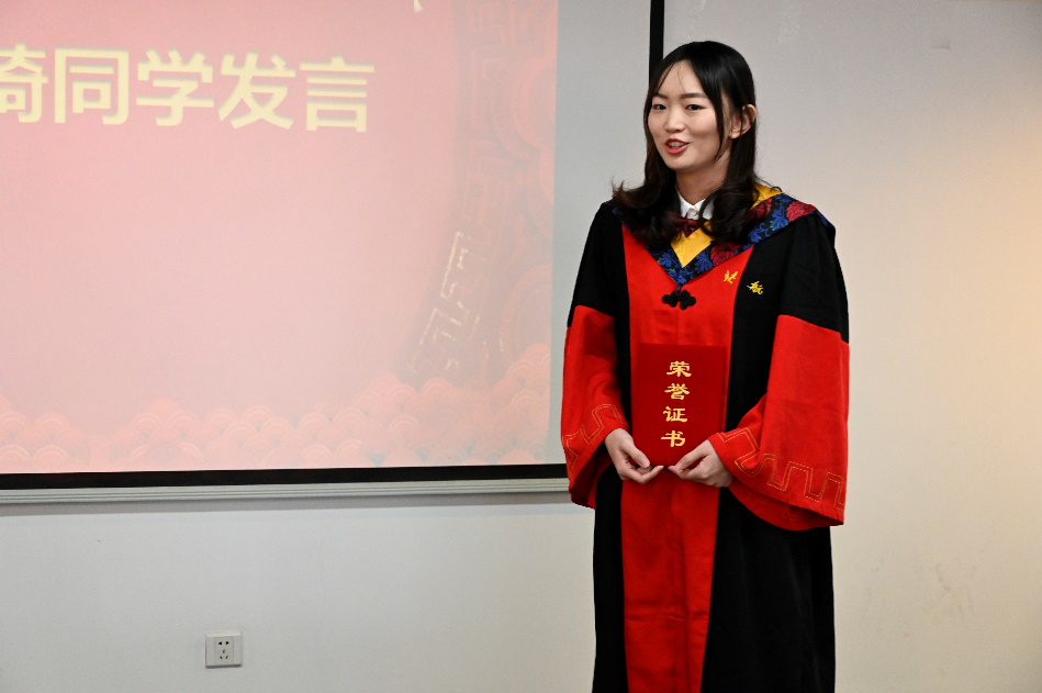 毕业典礼第一个环节,学院表彰了2019年优秀研究生集体和个人。微电子学院的研究生工作虽然刚刚起步,但也取得了令人骄傲的成绩,我院研究生获得北京市、学校、学院多项荣誉。学院领导为获奖同学和集体颁奖。校级优秀硕士学位论文指导教师王昭昊老师和北航“研究生十佳”、北京市优秀毕业生周家琦同学分别作为导师代表及优秀毕业生代表发言。