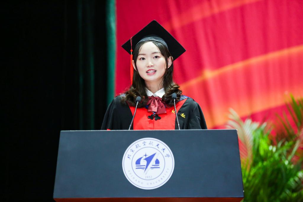 微电子学院博士研究生周家琦作为毕业生代表,代表726名博士毕业生、4488名硕士毕业生在毕业典礼上发言。周家琦同学表达了对母校的感激之情,提到在北航所收获的,不仅仅是知识,更是看待世界的角度,笃行人生的信条和衡量价值的观念,在北航获得了广阔的国际视野,坚定了奋斗的人生信念,塑造了与国同行的价值观,并号召同学们继承发扬北航精神,成为牢记信念理想、具有过硬本领、勇担时代重任的北航人。