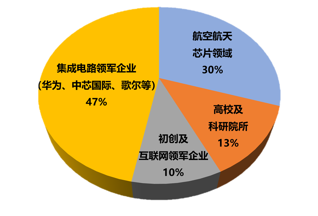 2019-2021届就业的毕业生中,投身于集成电路领域的毕业生占比97%,其中在航空航天芯片领域的(中国航天科技集团等)占比30%,在集成电路领军企业的(华为技术有限公司等)占比47%,在高校及科研院所的(电子科技大学等)占比13%,在集成电路初创企业及其它互联网领军企业的(北京中科寒武纪科技有限公司等)占比10%。毕业生主要就业企业排名如表所示。