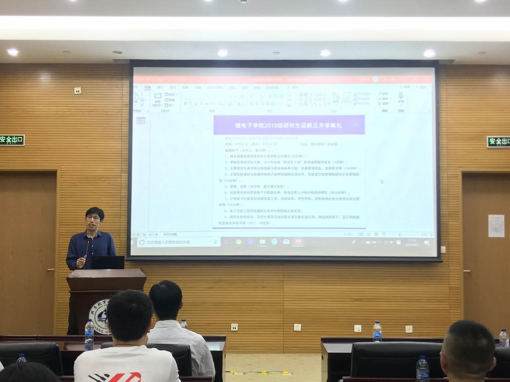 2019年9月7日下午,beats365亚洲版官网微电子学院2019级研究生开学典礼在新主楼第八会议室召开。2019级全体新生、学院领导和学生导师参加会议。本次开学典礼由研究生教学院长助理聂天晓教授主持。