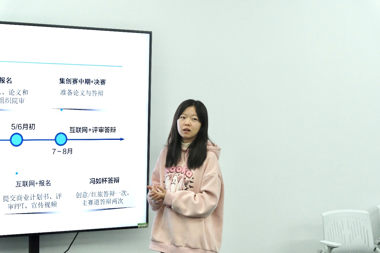 随后, 2024级硕士研究生陈依琴同学给同学们分享了她的成长经验。陈依琴曾任集成电路学院学生会主席,曾获小米奖学金、学业奖学金特等奖、创新创业奖学金一等奖等荣誉。她结合大学期间参与科创竞赛的经验,给学弟学妹们细致介绍了包括冯如杯在内的多项竞赛日程和准备工作。同时,陈依琴还就学生会工作分享了她的看法:参加学生会工作不仅可以服务他人,更是一个自我成长的过程,在学生工作中所锻炼的人际交往、沟通表达等综合能力将会使同学们受益终生。