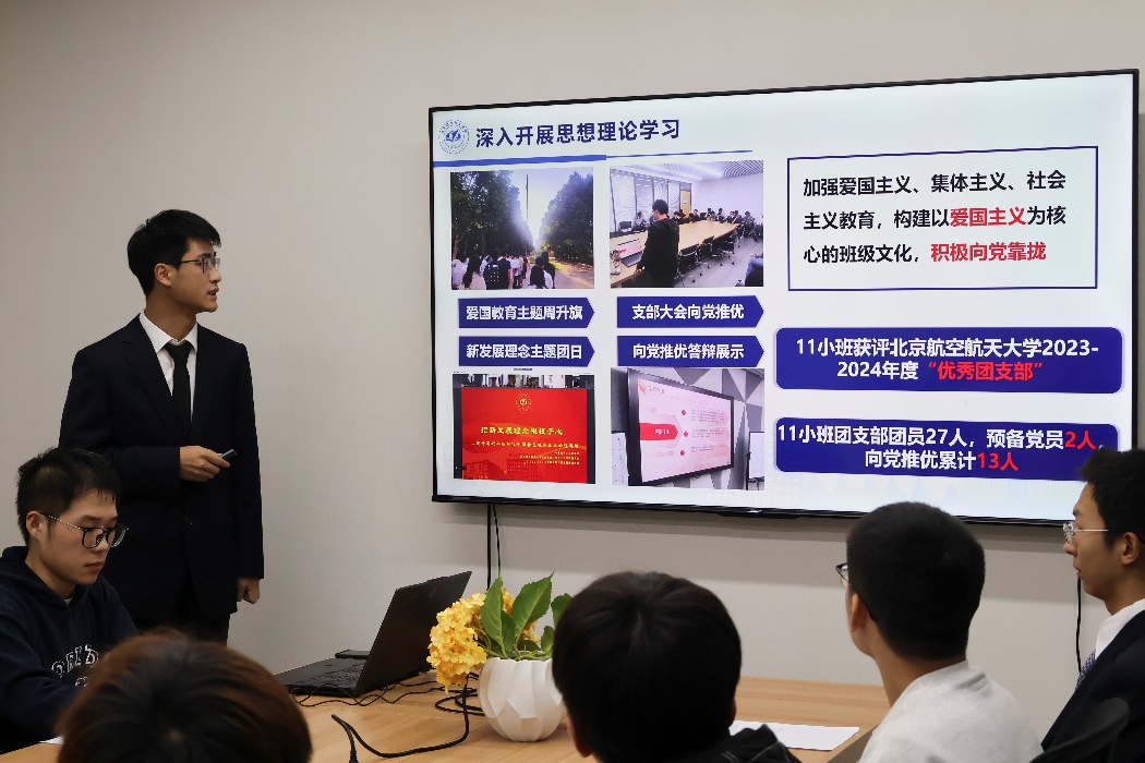 1.理论学习:在爱国教育主题周,同学们坚持早上集体升旗,班长团支书带头演讲,宣传爱国主义精神、弘扬北航学子为国献身的爱国主义精神。截至目前,班级共组织三次向党推优大会,班级中共有团员28名,预备党员数量达5人,向党推优优秀积极分子12人,党校毕业18人。