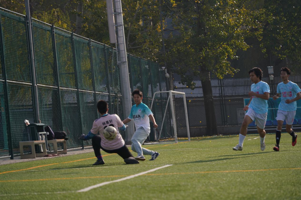 本场比赛联队迎来北航足坛传统劲旅17系(仪器光电学院)的挑战,面对强队,联队并没有摆大巴龟缩防守,而是积极拼抢、踢出风采,敢于打出平时多次练习的配合,敢于和对手的核心球员一对一挑战,敢于在对手的禁区内多次寻觅射门良机,敢于在落后的情况下继续努力尝试攻破对手球门。最终联队在3球落后的情况下,由场上队长赵俊懿在最后时刻抽射破门,以1-3的比分惜败对手,止步八强,虽败犹荣!