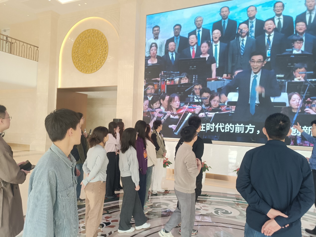23日上午9点,中微技术人员何德智先生带领同学们前往展厅。正逢中微建立20周年,一进展厅正门,大屏幕展示的是中微老总尹志尧指挥团队成员演唱《中微之歌》,慷慨激昂,充分体现出了勇于担当国家集成电路重大设备技术攻关的需求与使命。进入展厅内部,中微人员向同学们介绍了企业文化,企业所获奖项等信息,还有多种设备的3D图演示(可选择特定设备卡片,并通过旋钮从360°视角观察)、头发到5nm器件结构的显微观察(通过旋钮逐步调节观察尺寸)、交互刻蚀小游戏等,引发了同学们对工艺的想象和思考。之后来到一号工厂进行参观,参观一、二楼的超净室设备装备测试空间和三楼的绿色、智慧、高效的储备仓库,展现中微的自主设计如IQC、YMS系统的智慧工厂建设,同学们也对智慧工厂有了更为全面的认识,激发科研兴趣。