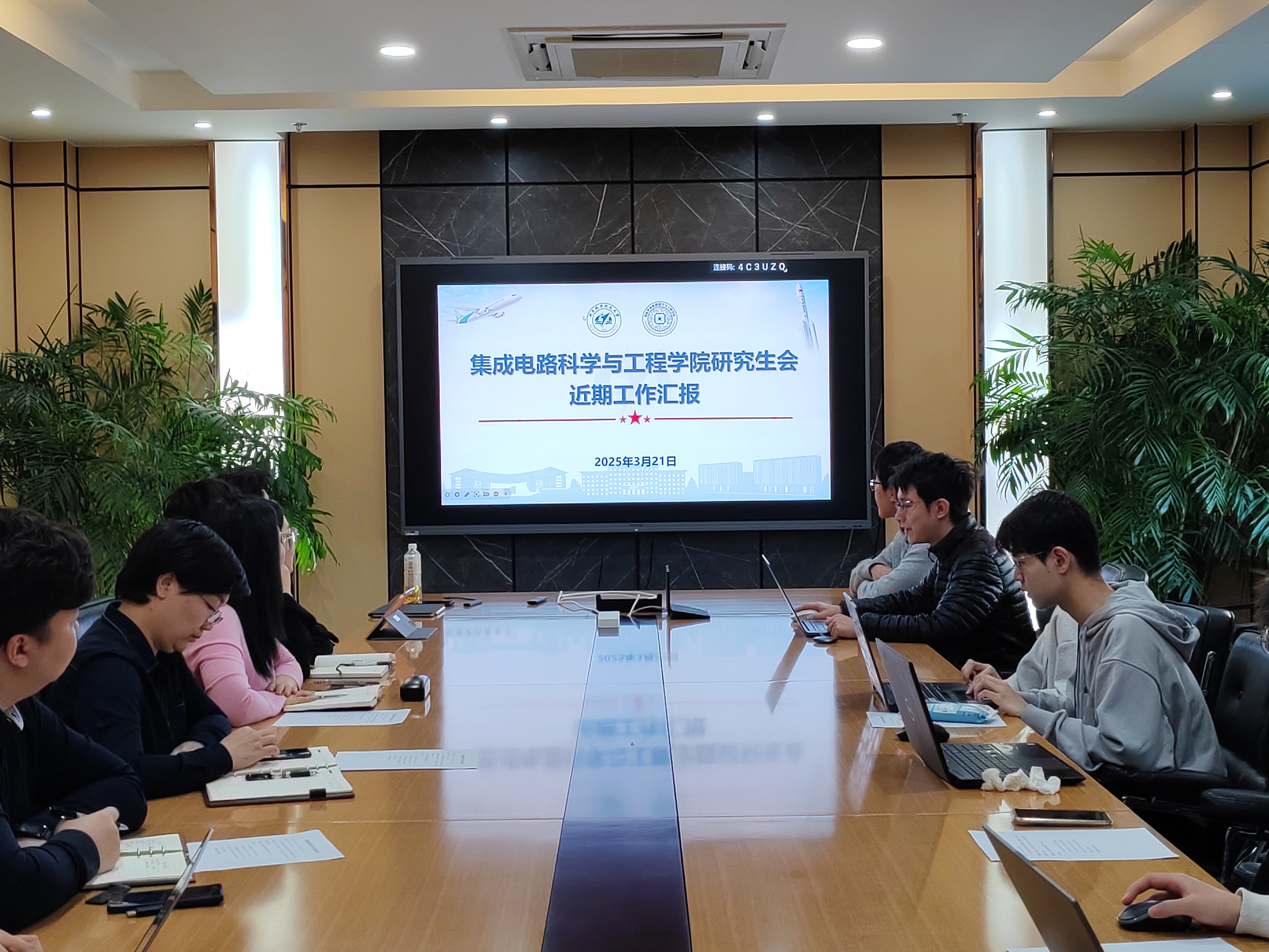 在听取各组织工作汇报后,与会师生立足工作实际展开进一步交流。研究生会学生代表围绕学生工位流转机制优化、工位设施完善方案、就业支持体系构建、培养方案解读推进以及加强学术交流开展等实际议题与学院领导展开深入交流,结合实际案例剖析问题,师生共同探讨解决方案,现场气氛热烈,为后续工作提供了思路。学院党委书记高静指出,就业支持活动的组织一方面由学院统筹引领就业资源对接,另一方面可依托学生就业俱乐部自主运营,形成协同推进的开展模式;同时,强化学生干部的主人翁意识,推动其主动发现问题、高效解决问题,切实提升服务效能;此外,积极探索灵活务实的校企联合培养机制,在追求培养质量的前提下,紧密结合学科特色与市场需求,为学生成长成才提供多元化支撑;在学术交流建设层面,发挥研究生在学术创新中的主体引领作用,策划更多地高水平学术交流活动,并充分发挥学生组织的纽带作用,通过搭建多元化学术平台、创新活动形式,持续浓厚学术氛围。