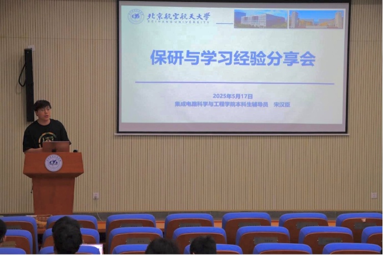 近日,集成电路学院顺利举办考研动员与保研经验分享会,面向学院大二大三学生,提供考研动员与保研经验分享。本次活动由本科生辅导员宋汉臣主持,邀请学院 2020 级本科生焦俊凯、2020级本科生王永甲和2021级本科生郭铠荣担任主讲嘉宾,为同学们呈现了一场干货满满的经验盛宴。