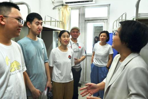 学院党委书记高静,专职辅导员丁瑞云、邓修齐,25级本科生辅导员陈镇城先后走访南区3公寓、新北13公寓新生宿舍,热情询问新生情况,关心同学们的住宿生活环境。高静鼓励同学们尽快适应大学学习生活,充分利用学院的资源与平台,勤奋学习、主动探索,在大学实现自我全面发展。