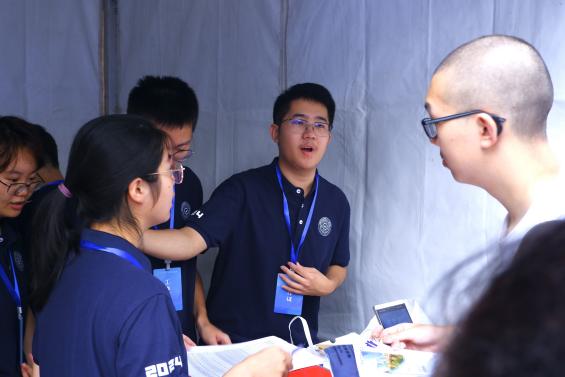 学院党委书记高静在迎新现场与新生及家长亲切交谈,介绍学院培养特色,表示学院将为全体同学搭建起高质量的培养平台,寄语新同学充分发挥学习主动性,尽快适应大学生活。