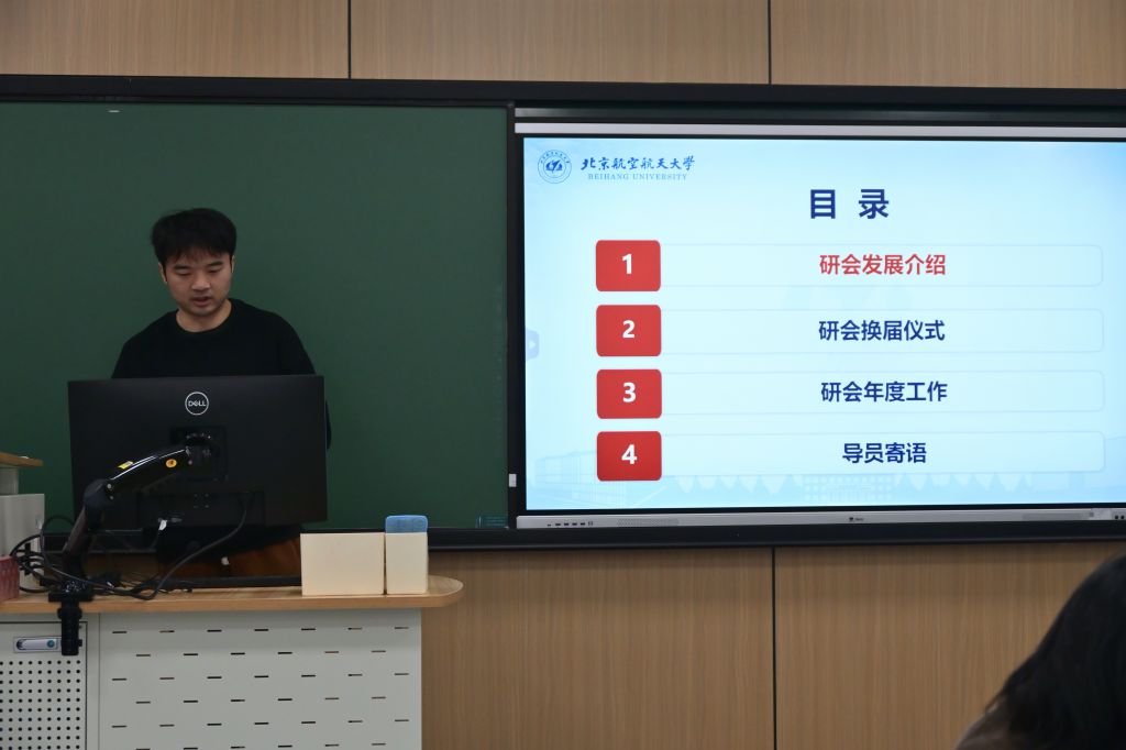 会议伊始,王赛雅代表第五届研会主席团向新加入的同学们表示热烈欢迎,并对研究生会的发展历程和整体情况进行了介绍。她梳理了研会组织架构与各部门职能,回顾了过去一年的工作成果,分享了本届研究生会的愿景与计划。她介绍,学院研会坚持以服务学院、同学为本,围绕“政治引领、全面发展、力争上游”三大方向,打造了学术、就业、文体三类品牌活动,同时围绕同学关切的权益问题,搭建与学院沟通桥梁,推动了多项同学切身问题的解决。