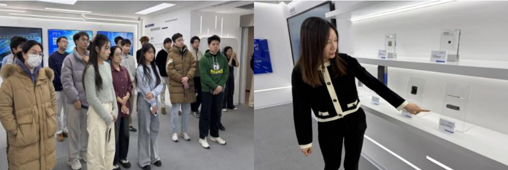 首先,同学们走进寒武纪展厅,在讲解员的生动介绍下,深入了解了公司名称背后的开源理念,回顾了其波澜壮阔的发展历程,见证了丰硕的专利成果与强大的产品矩阵。这一行不仅让我们对寒武纪的硬核实力有了直观认知,更深刻感受到了其致力于推动产业智能化升级的宏大愿景,令人对国产AI芯片的未来充满信心。更为同学们搭建了一座从理论知识通往产业实践的桥梁,有效增进了大家对行业发展现状的了解与认知。