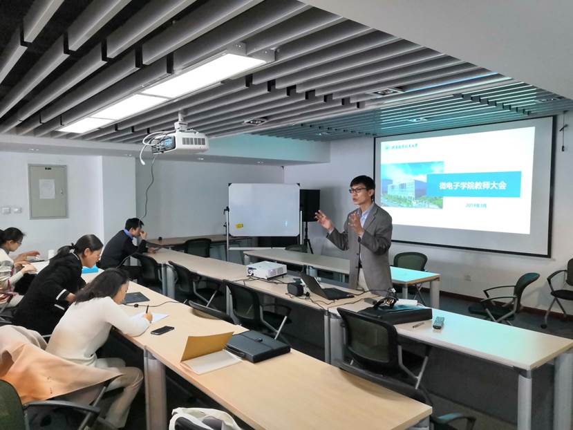 2019313日下午14:30分,微电子学院全院教师学习大会在学院路校区IRC大楼308会议室召开。学院副院长赵巍胜教授、直属党支部书记梁恩及全院教师、博士后一同参加。