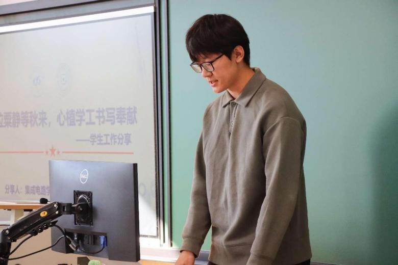 博士生第二党支部书记吴佳瑶作代表进行了深入学习习近平总书记关于创新人才的重要论述的主题分享交流,号召同学们夯实基础,聚焦国家重大战略需求,以突破技术瓶颈为己任,为实现技术自立自强,提升我国集成电路产业竞争力贡献智慧和力量。