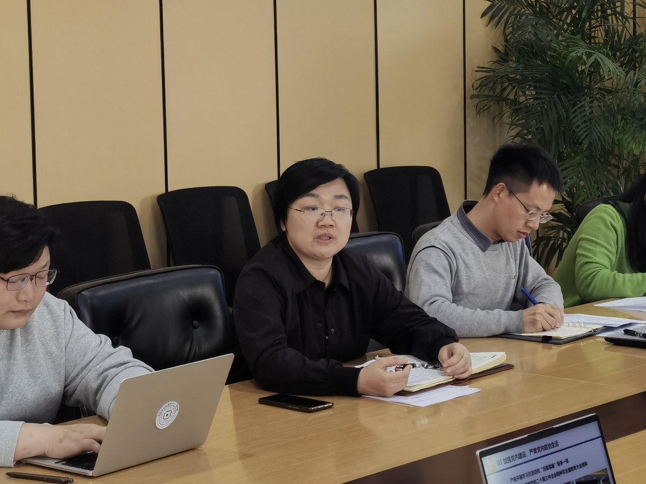 会议由学院党委书记高静主持。首先教职工支部书记进行现场述职,“研芯”党支部书记贾小涛围绕支部党员的学习教育、党建与事业融合的特色和存在的问题及整改措施等方面进行了总结和汇报。高静书记对教师党支部将支部活动与学科建设紧密结合给予充分肯定,并建议在今后的工作中,继续创新形式方法,加强支部自身建设,进一步深化党建与业务相融合,充分发挥党支部书记的“双带头人”作用,以党建促进科研攻关,加强政治引领作用。