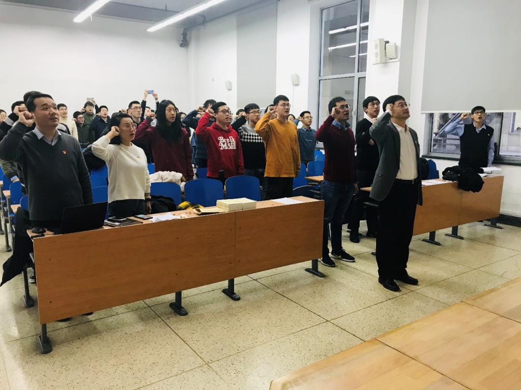 1月8日下午,微电子学院党委在新主楼F座121教室召开全体党员大会,为新发展党员举行宣誓仪式。此次共有6名同志作为新发展党员参加宣誓仪式,其中特聘研究员胡远奇同志,是微电子学院党委发展的第一位教师党员,王云鹏副校长作为胡远奇同志的校级入党联系人,受邀参加了此次宣誓仪式。
