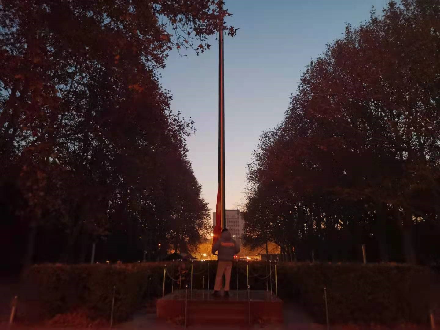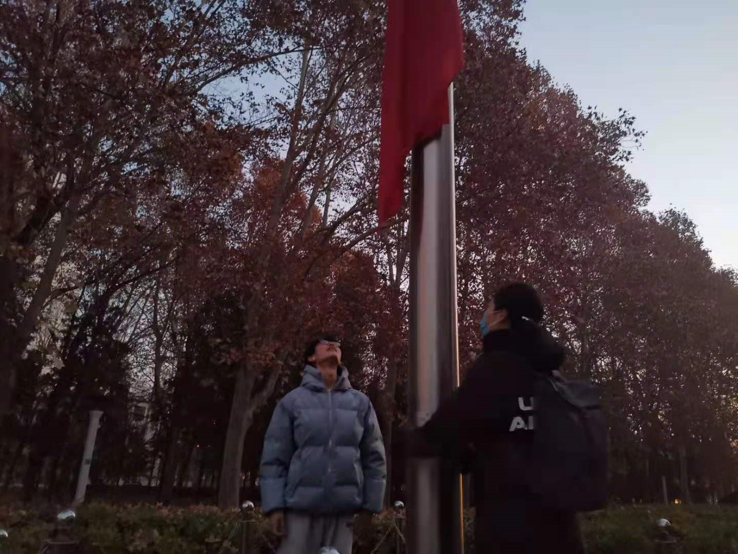 12月中旬,北京冬季的寒冷与黎明前的黑暗,都挡不住学院学子参加升国旗仪式的热情,尽管只有五十余名学子,仪式依然有条不紊地进行着,从开始到结束,同学们眼前是冉冉升起的国旗,背后是为人民服务的警示,心中则是满怀的热情与敬畏。