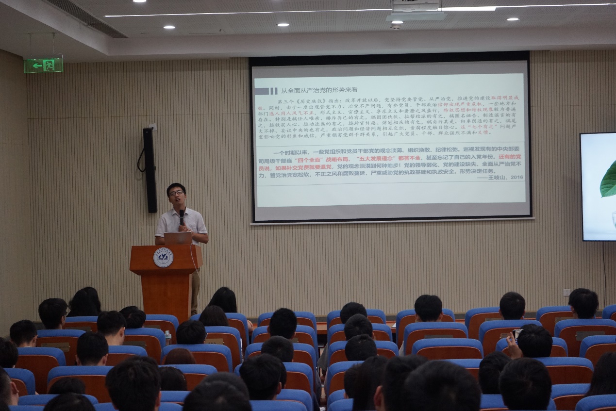 马克思主义学院副教授刘佳以《谈谈党的纪律》为学生做专题党课,详细解读《中国共产党纪律处分条例》和相关党内法规。刘佳强调要把党纪学习教育与解决实际问题结合起来,内化为日用而不觉的言行准则,真正形成“自觉的纪律”。与会同学纷纷表示,将铭“纪”于心,践“纪”于行,以实际行动向党组织靠拢。