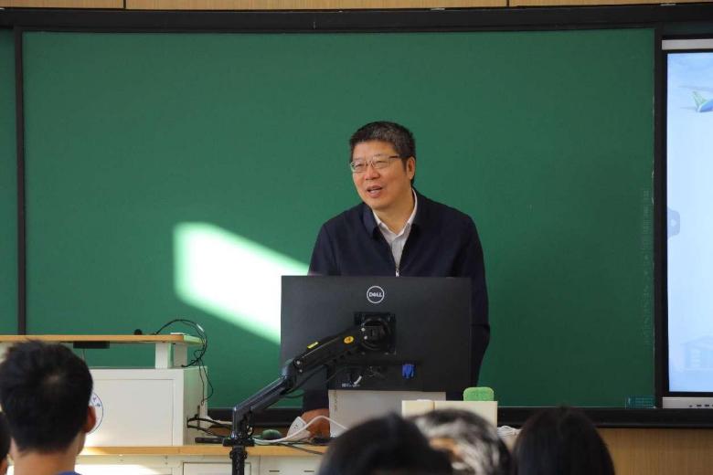 最后,刘树春校长为同学们讲授专题思政课,并鼓励集成电路专业的同学们要有“农民”思维,面对困难保持平和心态和再次播种的坦然,要有负重奔跑的勇气,不急躁,不气馁,脚踏实地。当下我国半导体领域面临严峻挑战,同学们应当顺应时代发展,利用好北航优质的软硬件条件,将专业学习同国家半导体领域战略需求紧密融合,踔厉奋发,笃行不怠,奋楫扬帆,勇立时代潮头,为国家集成电路事业贡献青春力量。