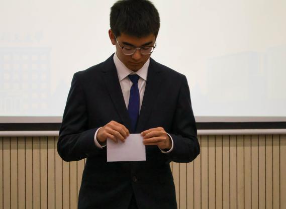 大会采取差额选举的方式选举产生主席团成员。候选人王之毓、阳杨、姜河和徐汉俊分别上台进行演讲,介绍个人经历和工作展望,表明了自己服务学院和同学的决心。