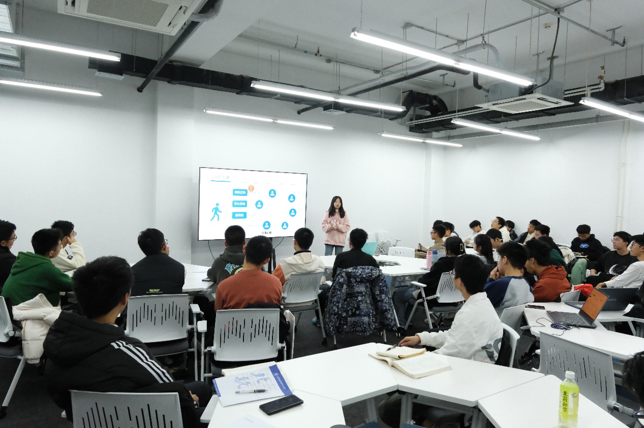 紧接着,2021级本科生陈欣雄同学带来了科创竞赛经验分享。陈欣雄曾获首批北京市自然科学基金“启研”计划资助,冯如杯制作组二等奖、“互联网+”北京市二等奖、北航电子创新大赛一等奖等奖项,项目成果已发表2篇SCI论文。他围绕参与科技竞赛的全过程,从竞赛的选题、团队组建、项目实施到最终的成果展示,详细讲述了每一个环节的要点和心得。陈欣雄认为,科技竞赛不仅是对专业知识的一次全面检验,更是团队协作和创新思维的锻炼。他鼓励学弟学妹们勇于挑战自我,积极参赛,在各类科技竞赛中全方位提升自己的综合能力。