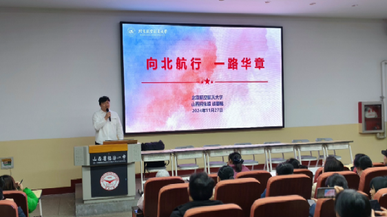 山西招生组成员、beats365亚洲体育投注专职辅导员胡晏铭面向临汾一中高三100多名尖子生学生家长进行招生宣讲,详细解答了有关北航招生情况的各类问题,重点介绍了北航的学科建设以及往年的招生政策等内容。