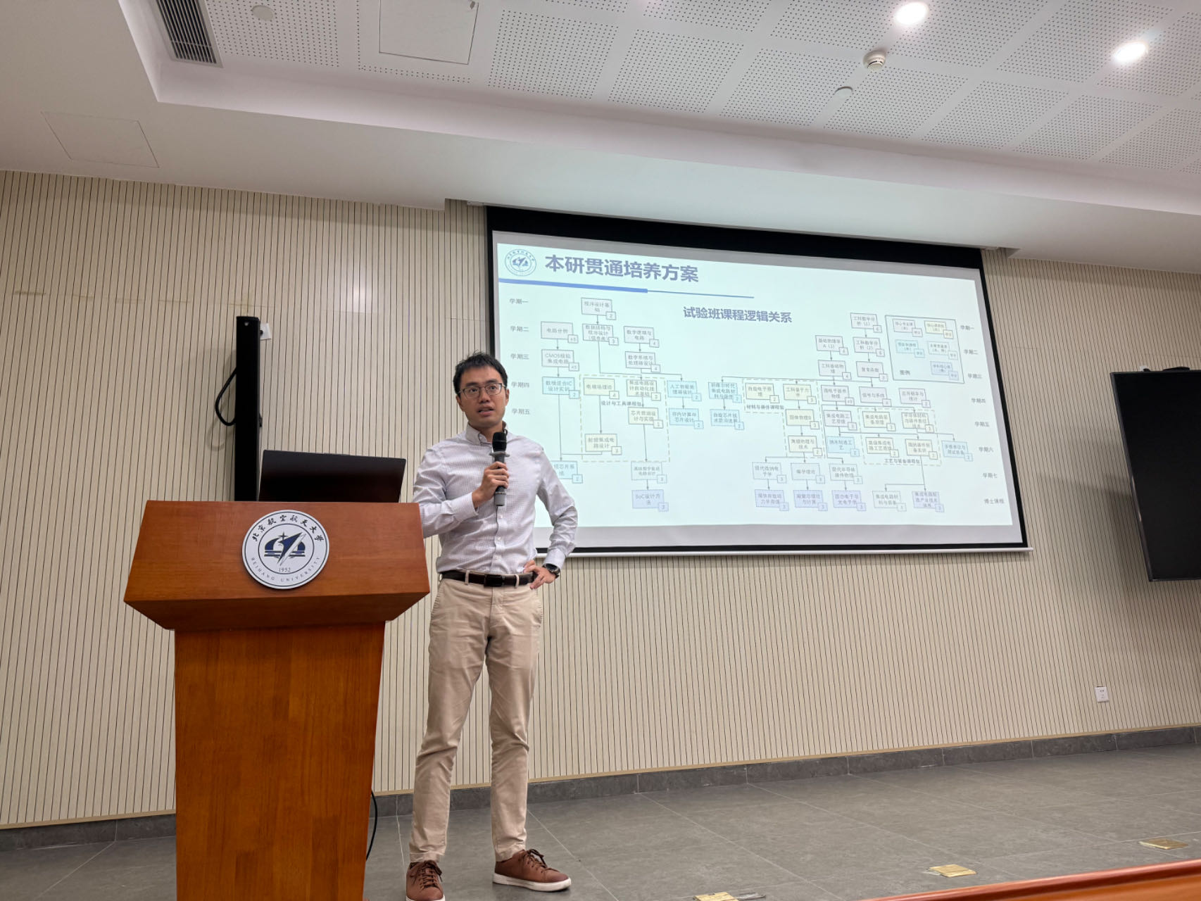 副院长胡远奇为试验班同学们解读了本博贯通培养方案,阐明了试验班课程的逻辑关系,通过专业课程前置的方式帮助同学们提前了解专业方向,尽快投身科研领域,同时利用课程学分的优化,为同学们提供更多的课余时间。