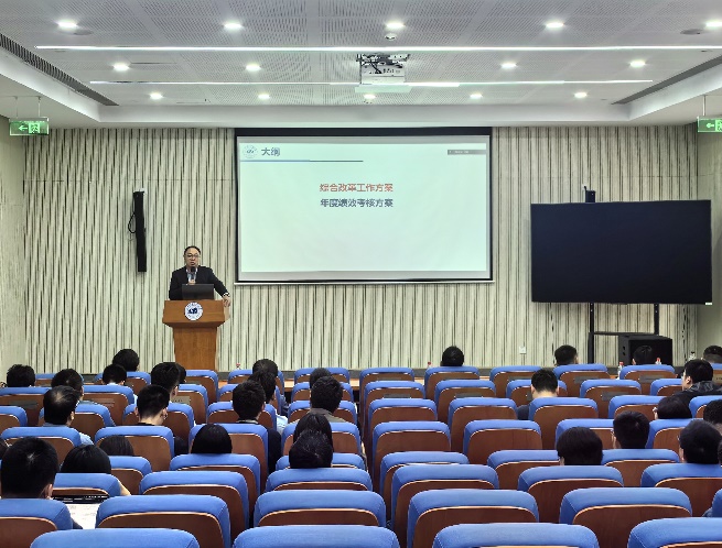 4月22日中午,beats365亚洲体育投注召开全院教职工宣贯大会,学院领导班子成员及全体教职工参加会议,深入学习贯彻学校2024年度人才培养大会精神,并宣贯学院综合改革方案。学院将围绕学校人才培养大会精神落实,聚焦打造集成电路学科育人特色,围绕完善课程体系、加强教师队伍建设、加强学生思政教育和学风建设等,密集组织召开人才培养顶层设计研讨会、基层教学组织研讨会、本研一体培养方案修订研讨会、学生面对面思政工作研讨会等,推动学院人才培养工作取得新实效。