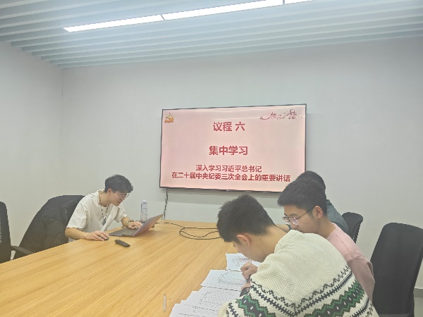 最后,支部全体党员同志集中学习习近平总书记在二十届中央纪委三次全会上的重要讲话,并展开深入讨论。同志们一致认为,习近平总书记的讲话高屋建瓴,深刻阐述了当前党风廉政建设和反腐败斗争的重要意义和举措,为我们开展党员教育和党风廉政建设提供了重要遵循和指导。同志们纷纷表示,要深入贯彻习近平总书记的重要讲话精神,增强“四个意识”、坚定“四个自信”、做到“两个维护”,不断提高政治站位,切实把思想和行动统一到党中央的决策部署上来,以更加饱满的热情和更加务实的行动投身到党的事业中去,为实现中华民族伟大复兴的中国梦不懈奋斗。