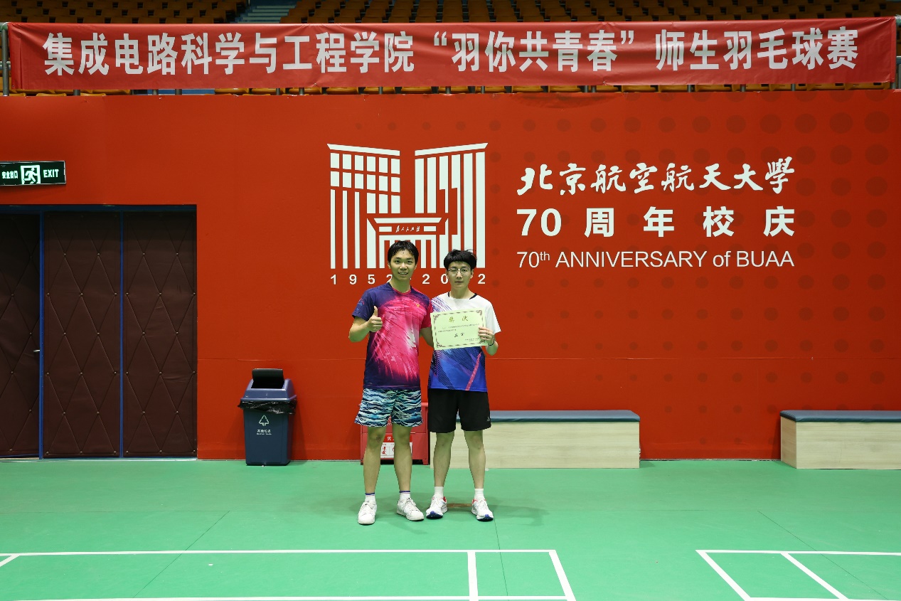 本次赛事获得了老师和同学们的积极响应,师生共计50余名运动员参赛,覆盖本硕博所有年级,累计进行了72场比赛。大家在小小的羽毛球场地上辗转腾挪,挥汗如雨,尽显校园师生的朝气蓬勃,同时展现了学院体育文化生机与活力。原本在实验室严肃的老师同门,今天成为了比赛场上的对手和战友,比赛过程中的拍手鼓励,赛后的拥抱致意时,都给大家留下了别样的记忆。