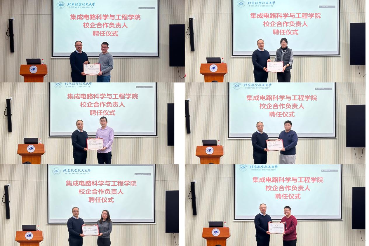 会上举行了校企合作负责人聘任仪式。校企协同育人是完善集成电路学科建设,加强集成电路专项班人才培养和工程硕博士改革试点工作的重要环节。为打造学院与行业领军企业协同育人新格局,完善学院校企合作机制,学院实施校企合作“一人一企”负责人制度。常务副院长张悦为第一批集成电路学院校企合作负责人颁发聘书。