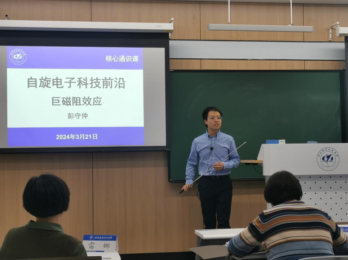 彭守仲老师讲授了“自旋电子科技前沿”课程中的“巨磁阻效应”这一小节。他从大数据时代的海量数据存储需求引出了硬盘及其核心结构——磁头,深入浅出地讲解了自旋相关导电、双电流模型及巨磁阻效应的基本概念及物理机理,阐释了巨磁阻效应在硬盘磁头中的应用原理及其带来的硬盘革命,并介绍了诺贝尔物理学奖得主Fert教授的科学家精神。