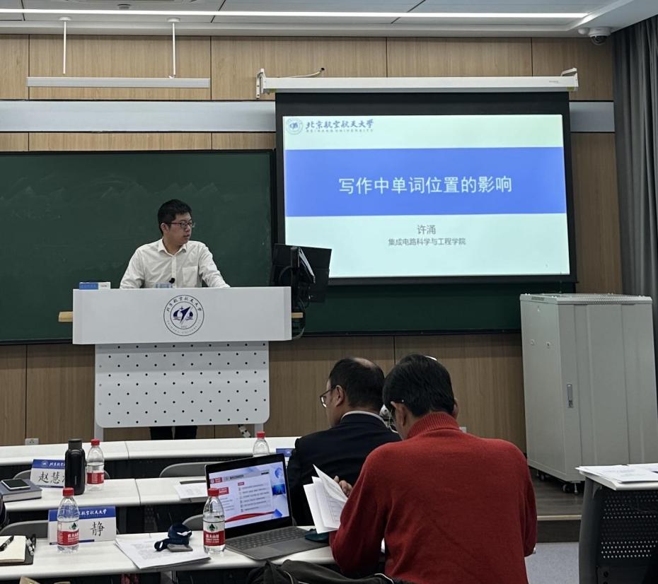 许涌老师以 “写作中单词位置的影响”为主题,通过交流互动展示了词语位置在句子中的重要性,探讨了科技写作中如何通过词语位置来传递关键信息,以案例分析的形式讲授种常见的句子组织方式和词语位置安排技巧,通过合理安排词语位置以提升学生的语言运用能力。
