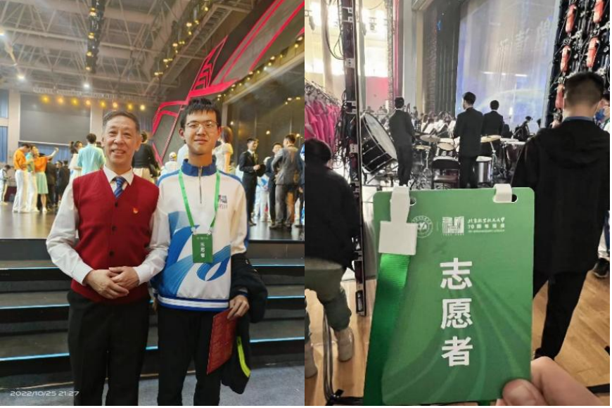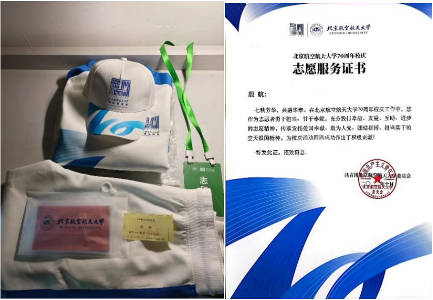 自初中注册志愿者以来,殷航同学积极参与多种志愿服务。大一入校后,他作为北航70周年校庆志愿者负责晚会保障相关工作。