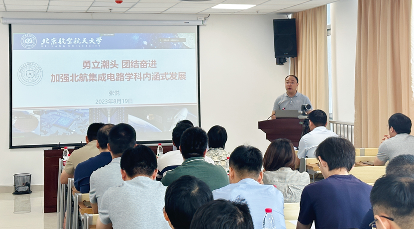 学院常务副院长张悦以《勇立潮头团结奋进加强北航集成电路学科内涵式发展》为题做专题报告。他表示,回首过往,建院五年来全体同仁齐心协力、敢为人先、多面开花,取得了有目共睹的成绩;立足当下,我们一直保持国内第一梯队领衔地位,受到学校、国内其他高校相关专业学院乃至国际学术界及高等院校的广泛认可;展望未来,迈入“国家集成电路学院”发展新征程,全体教师应群策群力、团结奋进,为学院高质量内涵式发展提供源源动能,争做北航集成电路学科的创“史“人!