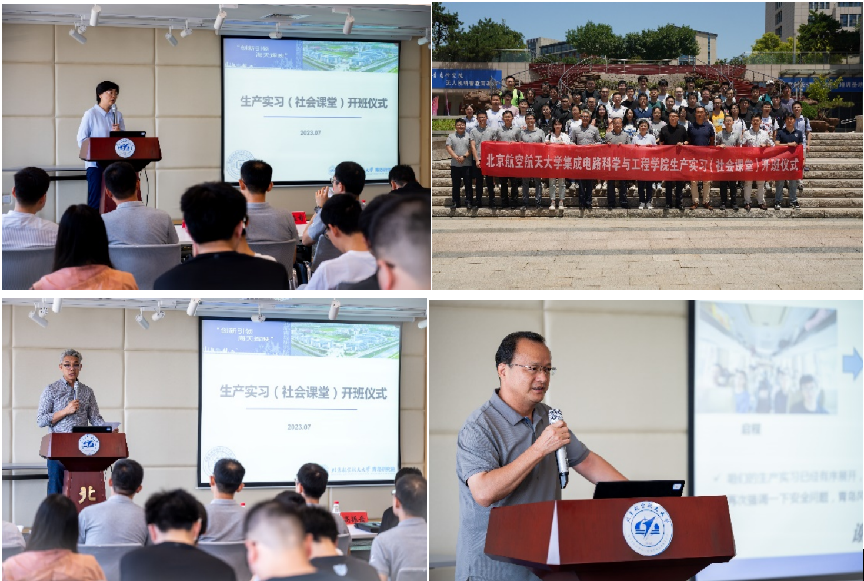 7月5日上午,北航集成电路学院社会课堂联合开班仪式在北航青岛研究院举办。学院党委书记高静出席会议并发表讲话,代表学院向企业和青岛研究院表达了感谢,青岛研究院与企业各方领导也对同学们表示了欢迎以及对社会课堂的期盼。