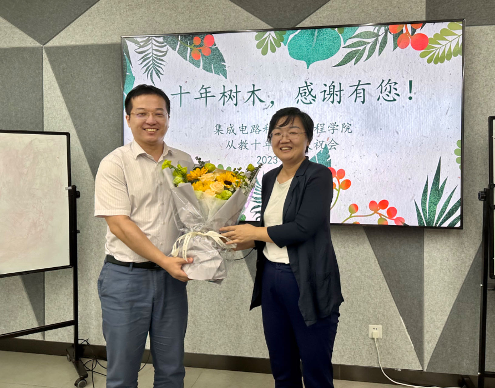高静书记首先对入职十年的老师表示衷心的感谢和节日的慰问,她表示,老师们把青春和才华奉献给了学校和学院发展。学院的每一份成绩也都凝结着大家的辛勤工作和智慧汗水,希望大家在今后的工作中能够继续发扬勇于担当的精神,为学校和学院的发展建设添砖加瓦。