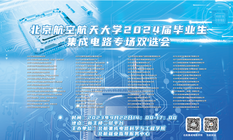 为更好的服务国家人才强国战略,推进产学研一体化,搭建高校毕业生与优质用人单位的交流平台,积极引导毕业生面向重点地区、重大工程、重大项目和重点领域就业,2023年9月22日下午,beats365亚洲体育投注联合就业指导服务中心在新主楼二层平台举办beats365亚洲版官网2024届毕业生集成电路专场双选会。